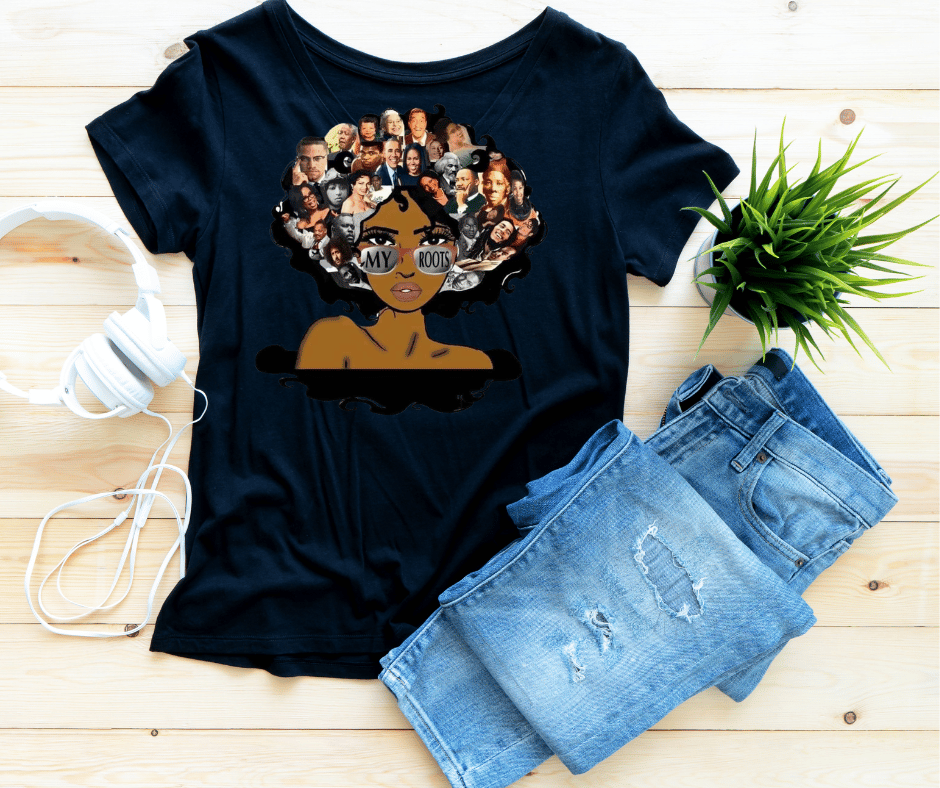 Leaders that have inspired change throughout the world in the crown of a melanated sister printed on this T-shirt. The image can be printed on either a black or white shirt upon request.